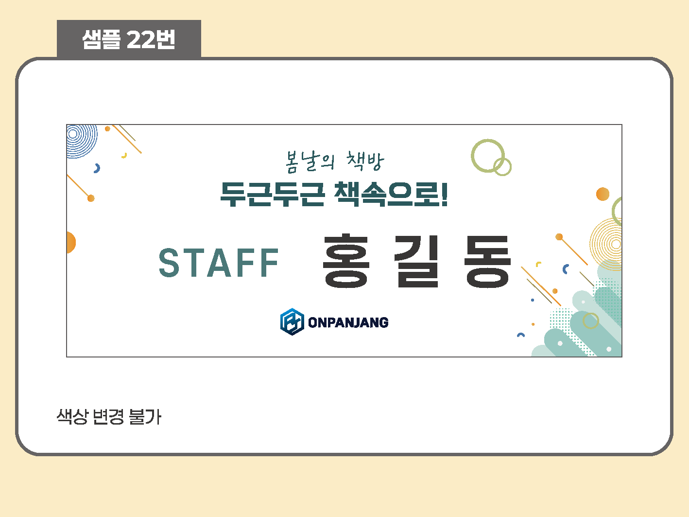 친근한 그래픽과 컬러를 활용해 활기찬 분위기의 명패 제작이 가능한 디자인입니다.