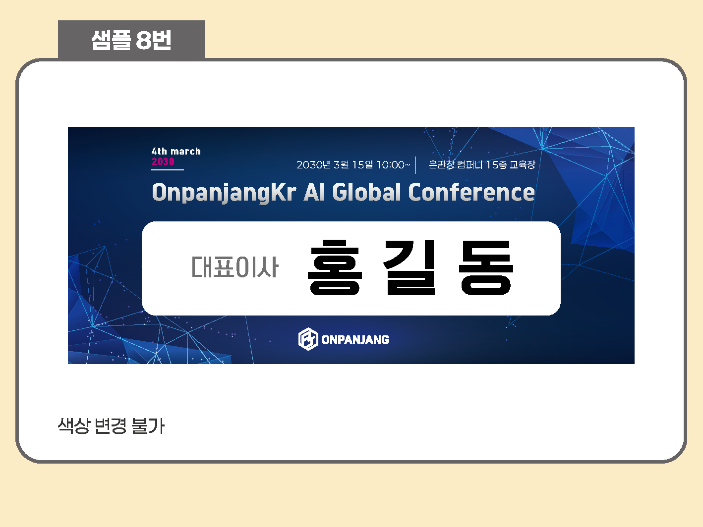 컨퍼런스, 교육 행사에서 많이 선택되는 행사 명패 스타일입니다.