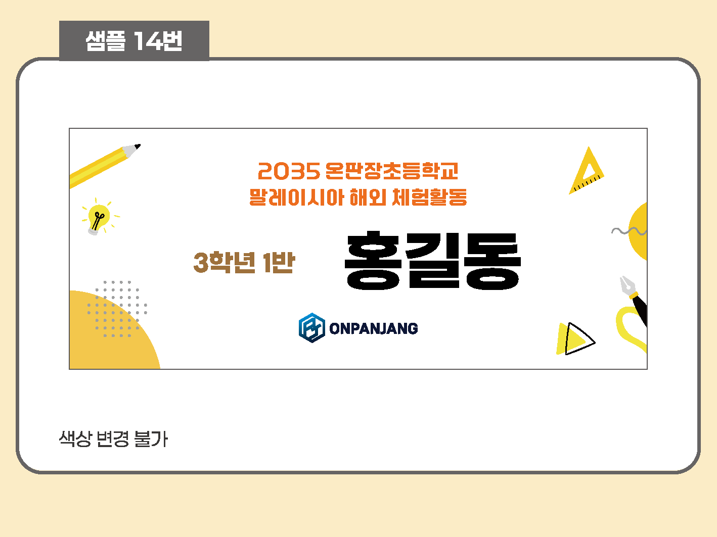 밝은 컬러와 이미지 구성으로 가벼운 분위기의 명패 제작이 가능한 디자인입니다.