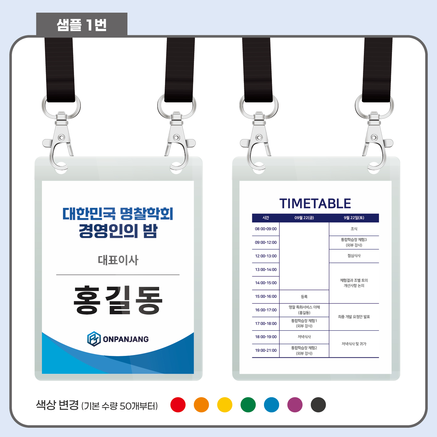 안녕하세요. 목걸이 명찰, 영상, 홈페이지 제작 전문 업체 온판장입니다.